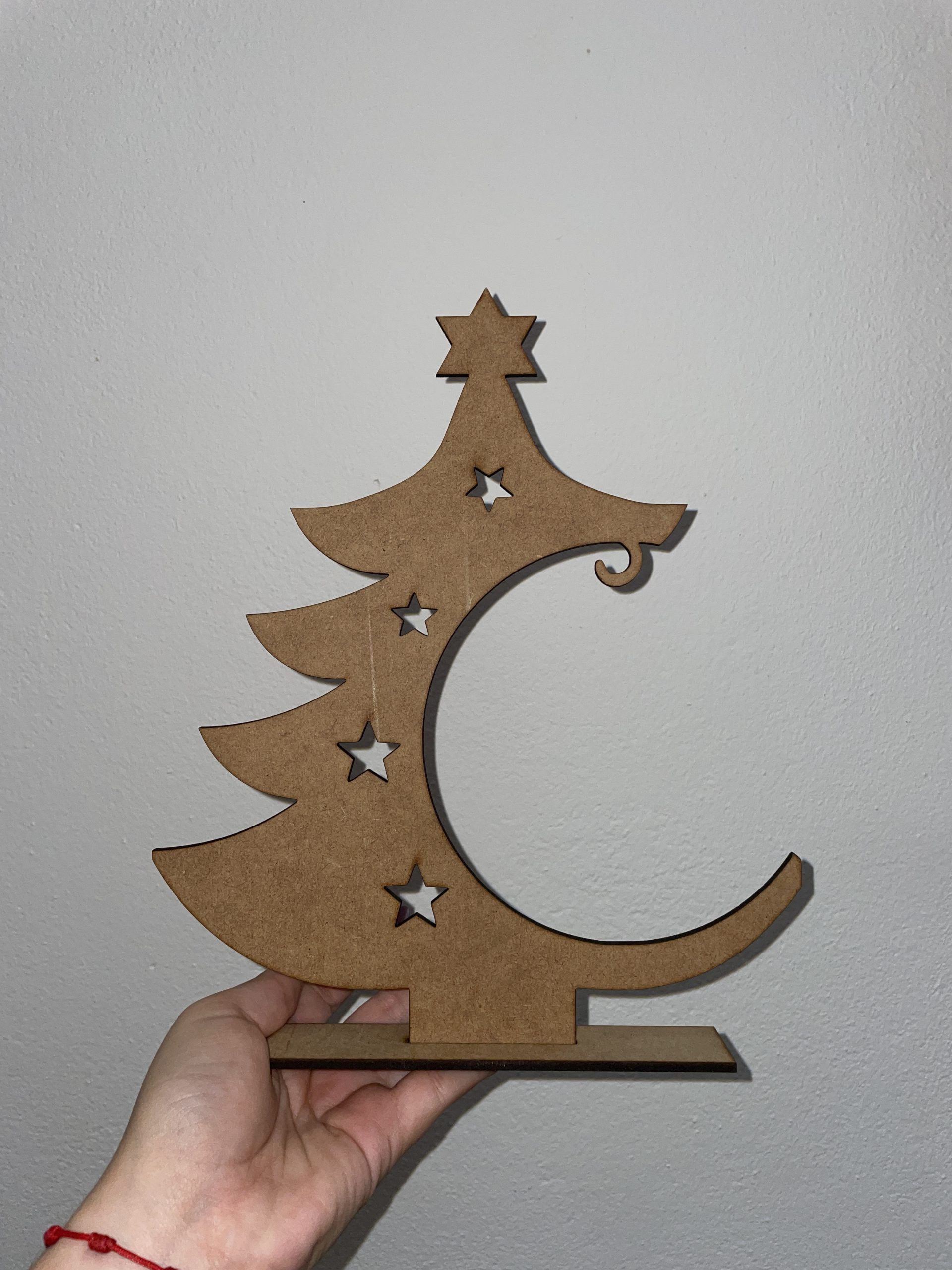 Árbol navideño decorativo para mesa. Puedes elegir si ponerle un gancho para colgar el adorno que prefieras, o añadirle un adorno en madera. Personalizable.